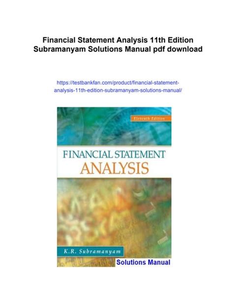 Download financial statement analysis subramanyam solutions manual PDF online is a convenient and frugal way to read financial statement analysis subramanyam solutions manual you love right from the comfort of your own home. Yes, there sites where you can get PDF "for free" but the ones listed below are clean from viruses and completely legal to use.